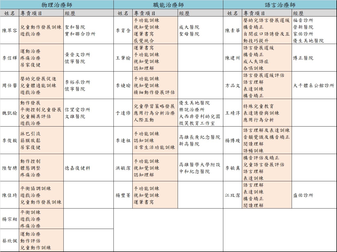 治療師團隊簡介